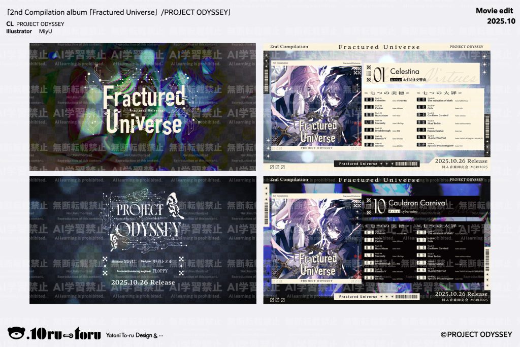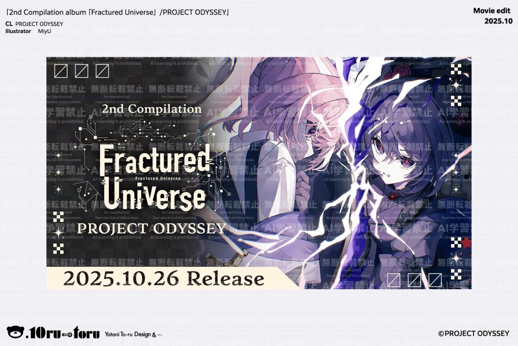 PROJECT ODYSSEY様 2nd Compilation album 「Fractured Universe」 XFD動画制作 <XFD> Illustrator :MiyU ©︎2025/PROJECT ODYSSEY ← 2025/09 CD 2025/10 AD →