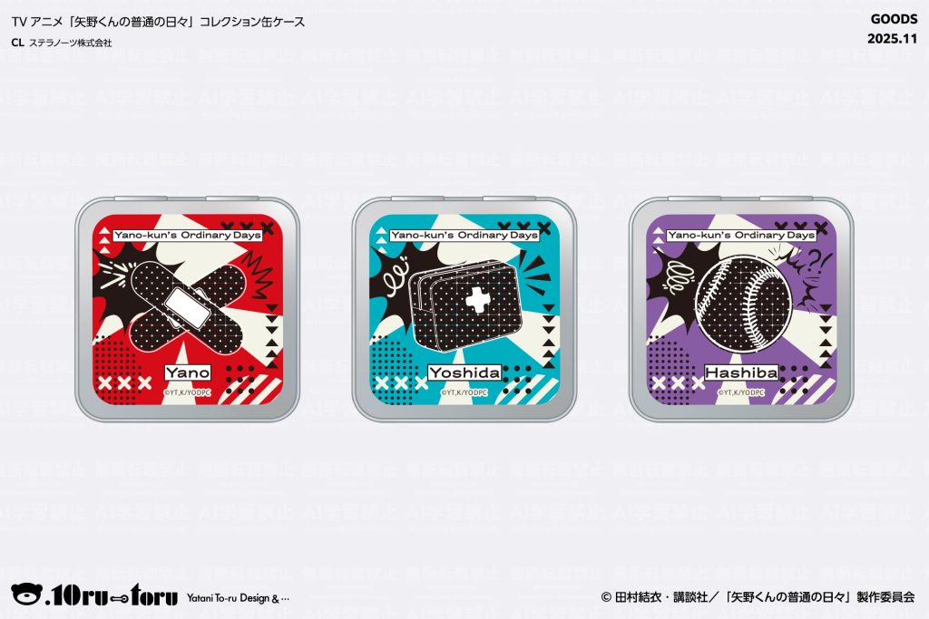 「TVアニメ「矢野くんの普通の日々」コレクション缶ケース」 グッズデザイン クライアント:ステラノーツ株式会社 ©田村結衣・講談社/「矢野くんの普通の日々」製作委員会 ← 2025/11 GOODS 2025/11 GOODS →