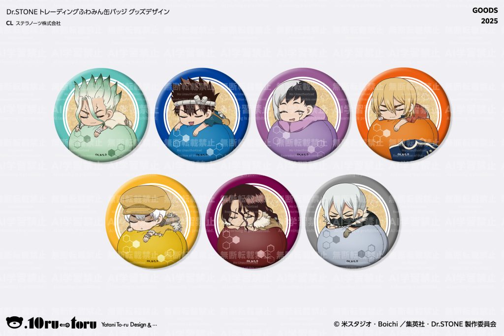「【Dr.STONE】 トレーディングふわみん缶バッジ 」 グッズデザイン クライアント:ステラノーツ株式会社 ©米スタジオ・Boichi/集英社・Dr.STONE 製作委員会 ← 2025/11 BANNER 2025/10 GOODS →